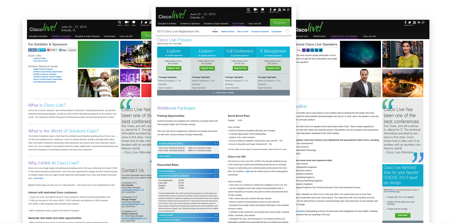 Founded in 1984 in San Francisco, Cisco is the largest networking company in the world. Cisco Live! is their annual customer and partner conference. Attendees get a networking opportunity by learning directly from industry peers, listening to thought leaders, attending workshops, and scheduling one-on-one time with experts. The conference is widely popular and has tremendous legacy, with the inaugural event occurring in 1990.